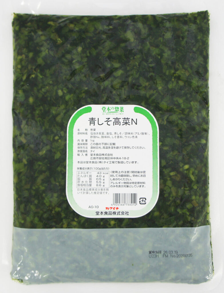 タイ産の生鮮青しそと、しその葉から抽出したしそ油を使用した爽やかな香りが特長です。ごはんへの色移りが少なく、混ぜ込みに適した短めのカットサイズです。